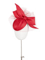 An elegant pillbox with sweeping lines and a statement bow, softened with matching veiling. Shown here in ted.