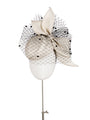 An elegant pillbox with sweeping lines and a statement bow, finished with contrasting veiling.