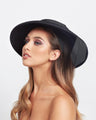 Isabella is a gorgeous brimmed hat made in a beautiful velvety velour fur felt. Worn on a wide headband covered in a petersham ribbon to match the hat band.