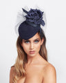 Lydia is a teardrop made in a luxurious velour fur felt trimmed with a buntal loop, a handmade silk rose and fine millinery veiling.